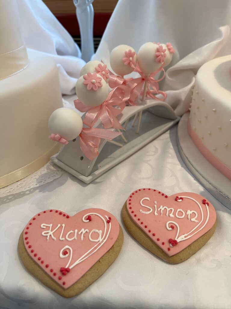 Neben unseren Hochzeitstorten bieten wir außerdem noch weitere Highlights rund um den schönsten Tag des Lebens an, wie etwa Hochzeits-Bäckerei, Petit Four oder belegte Brötchen an.